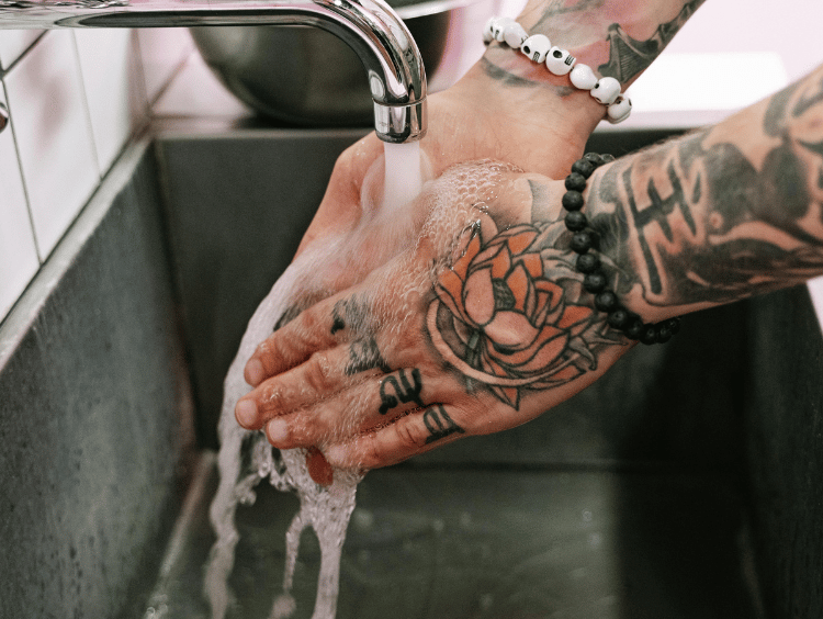 The tattoo will feel tender and stiff, and may sting when you wash it. This is completely normal. It's important to be gentle with it and not rub the soap in too aggressively.
