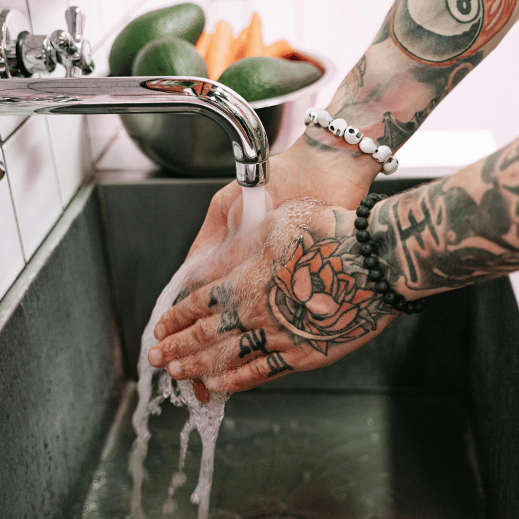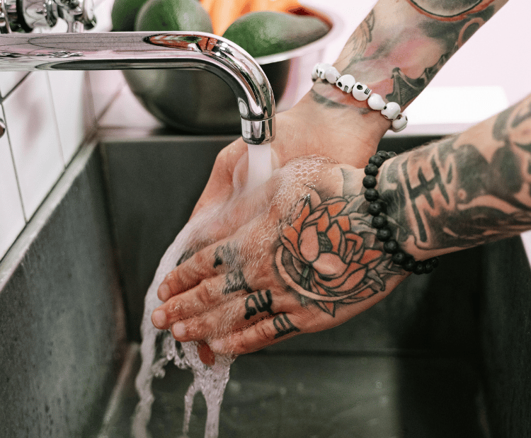 The tattoo will feel tender and stiff, and may sting when you wash it. This is completely normal. It's important to be gentle with it and not rub the soap in too aggressively.